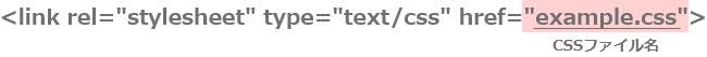外部ファイルで設定する場合は、HTMLの<head>~</head>の中に、どのCSSファイルを読み込むか記述します。